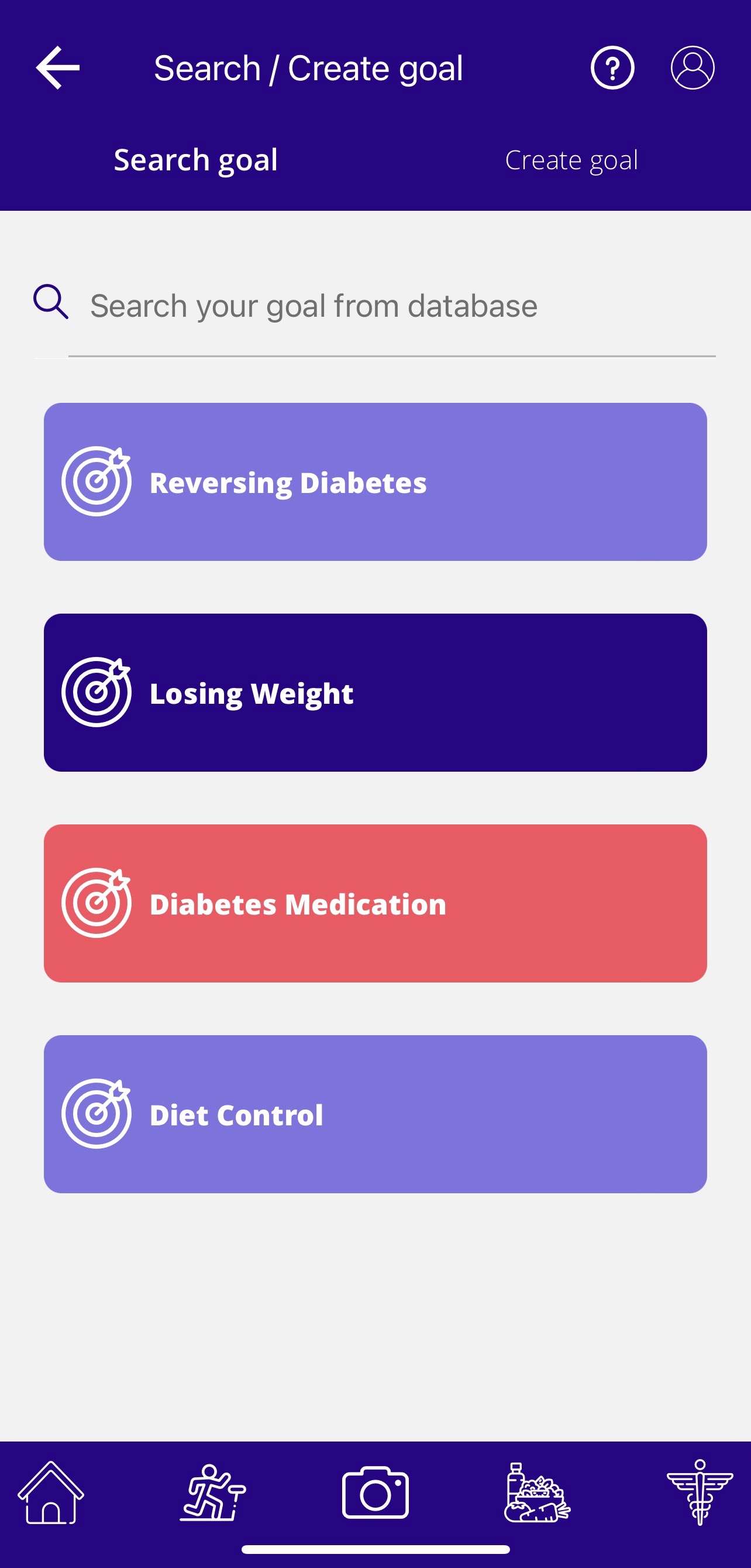 If you can’t find your desired goals in our database, you can create your own goal. Click on the menu and navigate to Diet Coach. Now add a new diet goal by clicking on icon. The next screen will give you the option to search diet goals from our ...