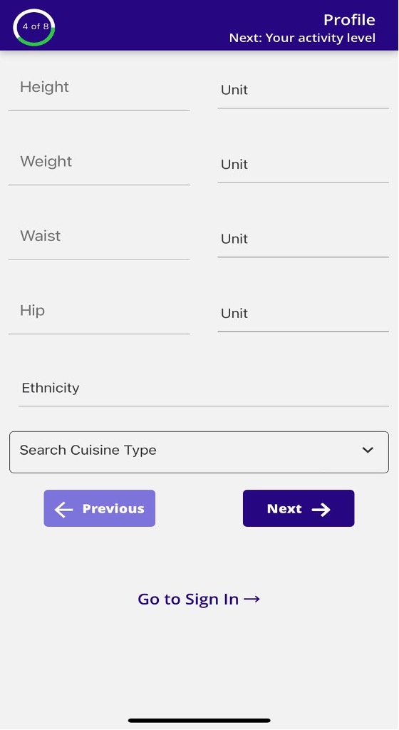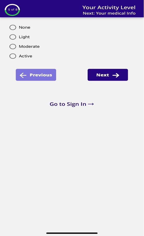 You will now be asked to enter your activity level. Choose an activity level that resembles you and press ‘Next.’
