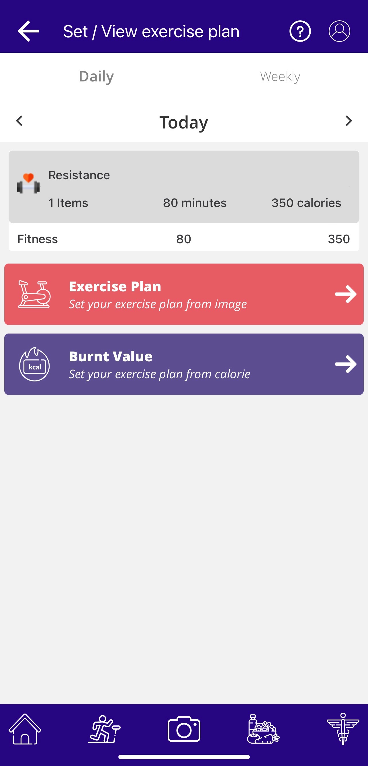 Click on Exercise Plan ‘Set your exercise plan from image’.