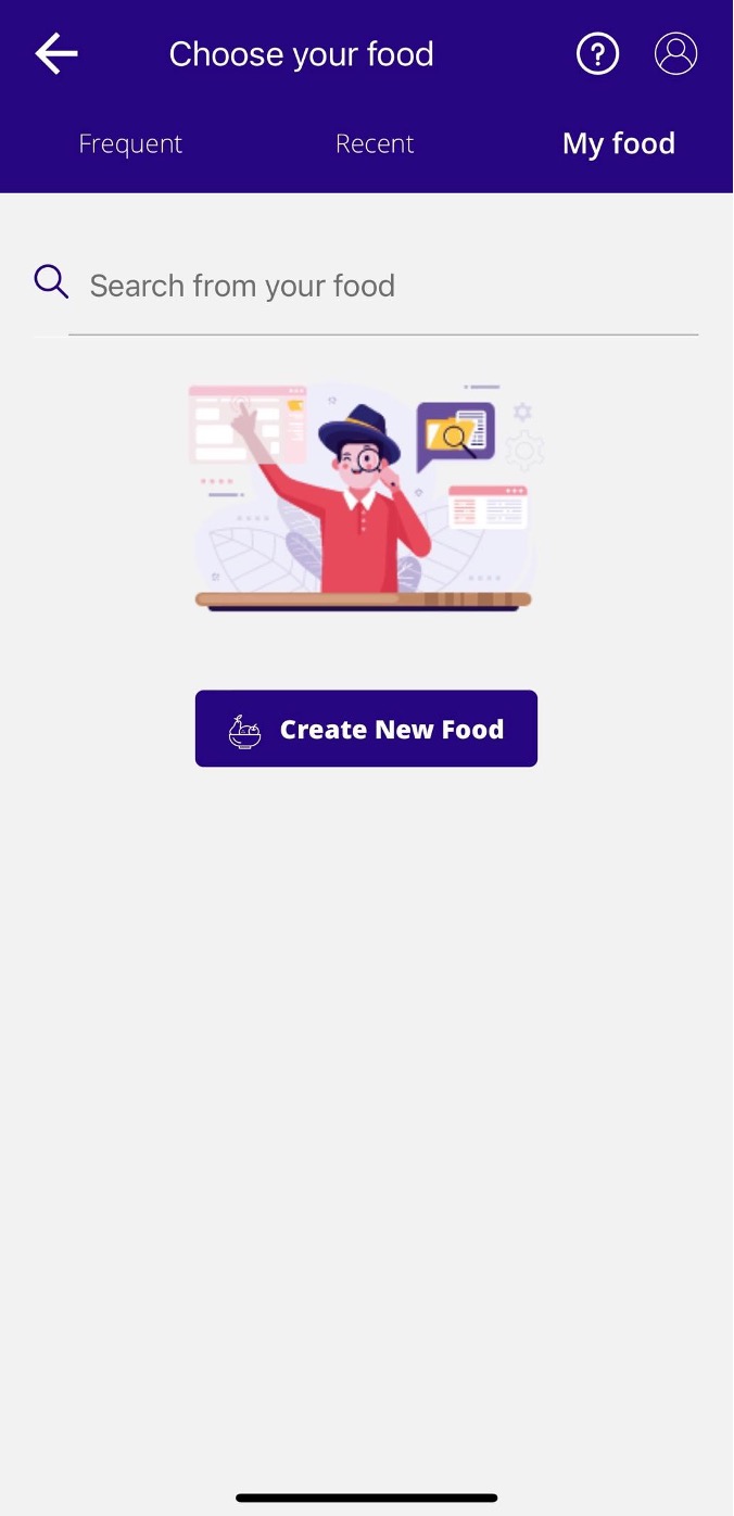 If you can’t find your food in our database, you can create one. Click on ‘Create New Food’ to create a new food entry.