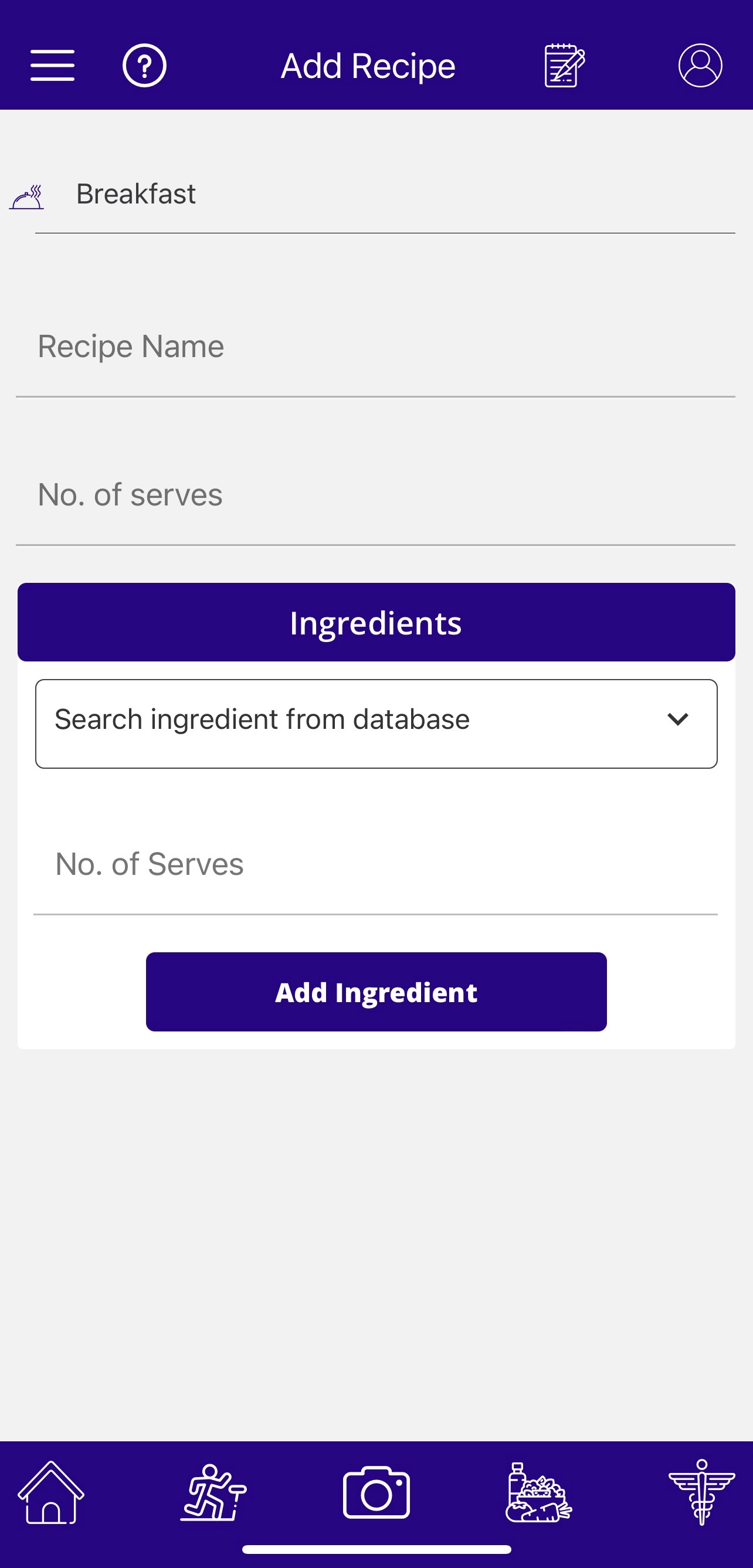 You will now get the option to search for your food from the database. Simply run a search on ‘Search from your food’ to get your food.