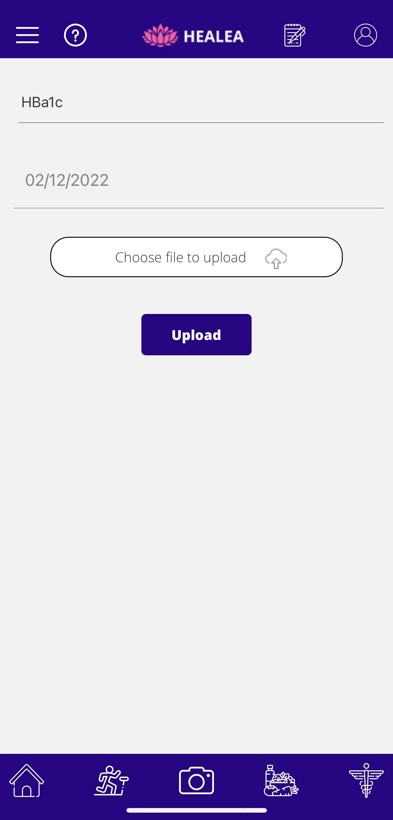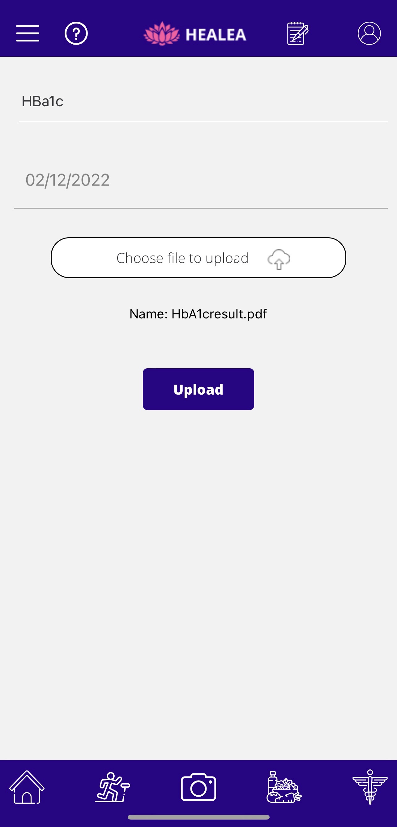 Next, enter the type of the lab result and the date when the test was performed and click on ‘Choose file to upload’ to upload result from your local storage.